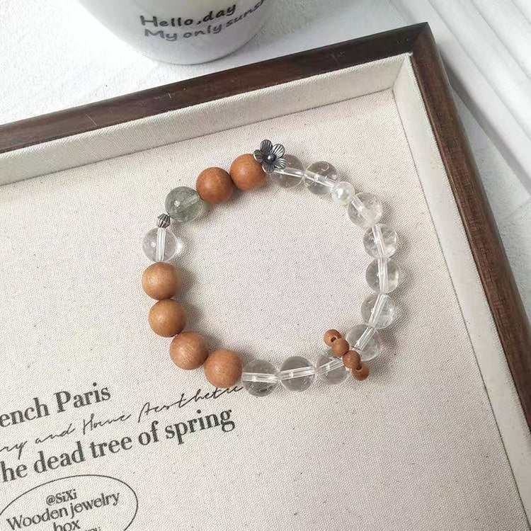 Custom Crystal Bracelet - with Clear Quartz, Green Rutilated Quartz & Sandalwood - [Standard]