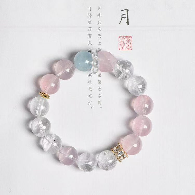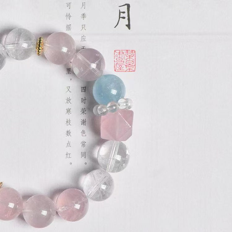 Custom Crystal Bracelet - with Rose Quartz, Clear Quartz & Aquamarine - [Standard]